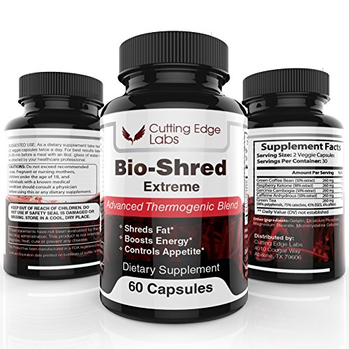 Each serving of BIO-SHRED EXTREME contains an explosive 1300 mg of our highly potent thermogenic blend of Garcinia Cambogia, Raspberry Ketone, Green Tea Extract, Green Coffee Bean and Natural Caffeine, combined into capsules for maximum fat burning results and increased energy. Each component in the BIO-SHRED EXTREME formula works synergistically with your body to deliver the best weight loss results. If you’ve been left disappointed by bogus “miracle cure” weight loss products, we urge you to give this remarkable product a chance. You won’t be disappointed!